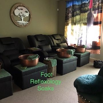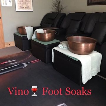 30m Un-wine Foot Soaks paired with a local craft beverage and snacks, then unwind 15m Zero Gravity Lounge 45m pp spa party group 3-8+