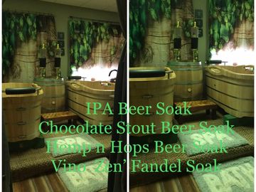 Spa Party Beer or Vinotherapy Bath Soaks, Sauna 4 Large Tubs private suites 3-8